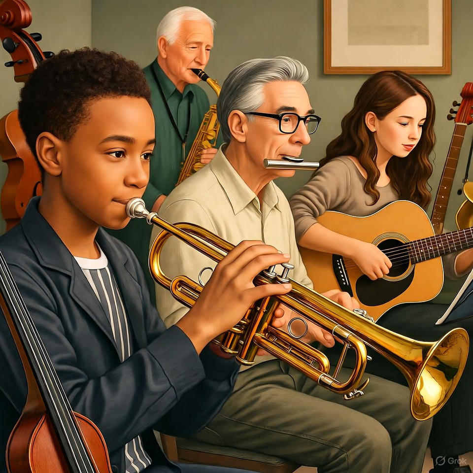 No auditions, flexible schedule, diverse repertoire – perfect for all levels. Build skills, make friends, and give back through music!